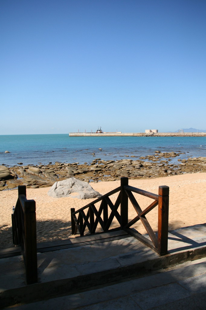 一上岛的右边就是冬季潜水大厅,我们去了解了一下潜水的价格。岸潜为260元/人,船潜为580元/人。岸潜呢就是在岸边潜,船潜就是用船把你拉到深一点的地方再潜,这样看到的东西会更多一点。想想,觉得有点贵了,先去岛上逛逛玩玩吧。我们就沿着沙滩,向西走去。一面游玩一面走。