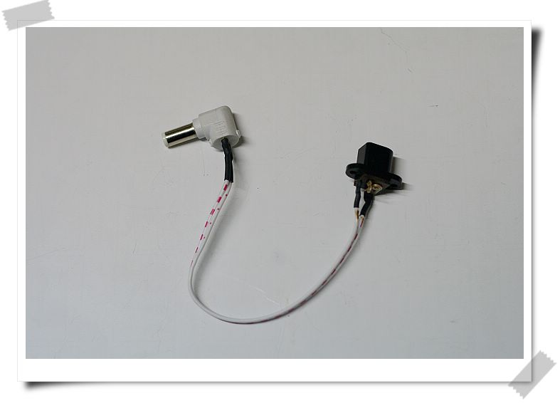 LAMA控的接点口是12v的,内负外正的。但是LAMA自带的这个变压器是内正外负的,所以我们第一要把这个换过来。我们需要做一根把变压器正负调换的连接线: