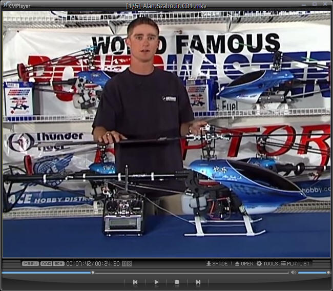 在这张80分钟的DVD光盘里,Alan展示了他的飞行秘诀,这些秘诀是每一位想成为3D飞行高手的人蒙昧以求的经验。如果你想进入3D特技飞行的世界,这张DVD是一定需要拥有的。其中的内容包括了引导你从基础飞行到进阶3D飞行的各阶段练习手法,视频采用双摄像机同步拍摄,在同一时间你可以看到直升机的飞行姿态和Alan操纵遥控杆的手法!