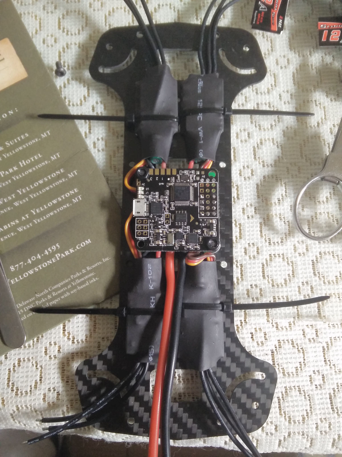 折叠穿越机 2015/12/29 by G0dspeed·0评论 目前穿越机很火啊~ 忍不住自己也装了一架。 飞控:NAZE32 v5 OSD: MinimOSD电调:银燕EMax 12A 电机:银燕MT2204II 摄像头:SONY 700线 机身:GE260Z折叠机架 模型