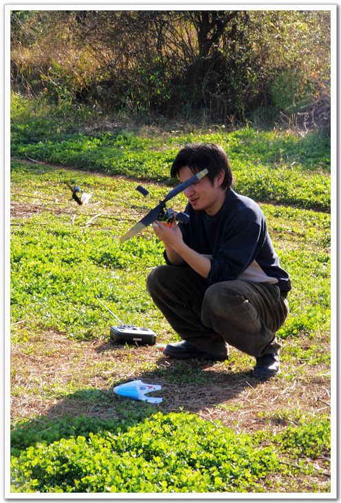 CY在开飞他的雷鸟。发现太难飞了,根本就不听使唤。飞起来就到处乱窜~后来回到昆明了才发现,居然是天线断了… 真晕啊