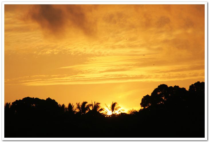 终于… 太阳从一颗椰子树背后升起来了…