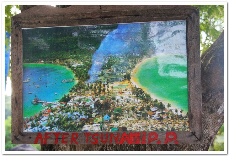旁边还挂了一张照片,是2004年发生海啸之后PP岛的全貌… 怎一个惨字了得。