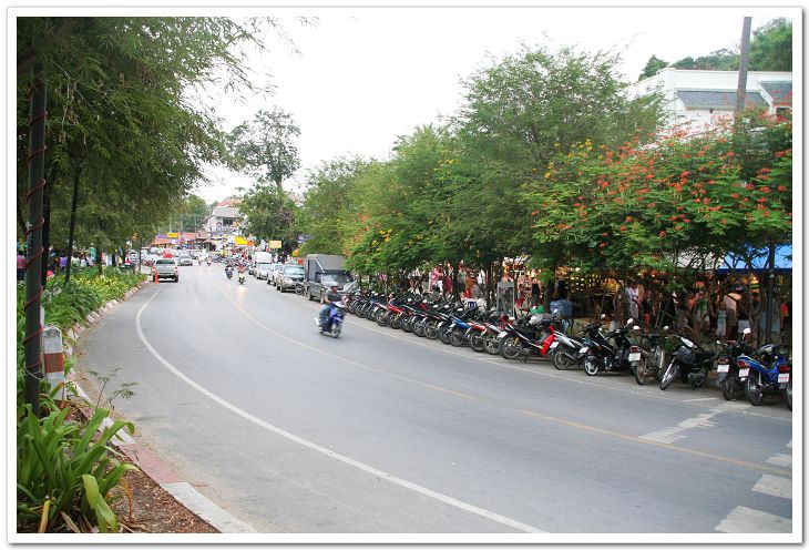 安置好行李以后,我们就出发到Aonang海滩啦。沿路有很多泰国的流动小吃,由一辆摩托就拉着就来卖的。有什么烤鸡腿啊、鲜炸果汁啊、泰国面线啊,现在想想都留口水 😀 。我们就在这吃了两碗面线,吃了只鸡腿。140B搞定,不错。