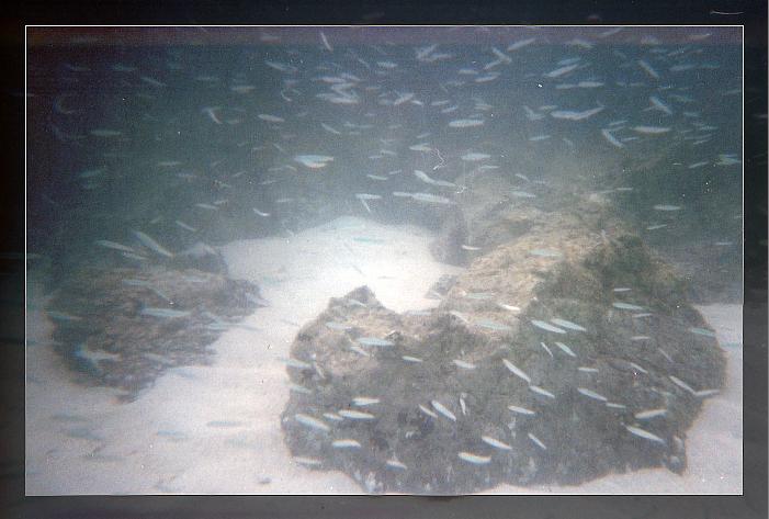 这里的小鱼也是在礁石附近一群一群的,我们是没有带东西来喂鱼。要不肯定也是一群一群的鱼围着,呵呵。